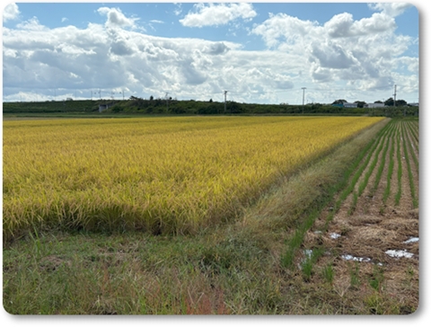 いつものように隣より遅く田植えをしたので、実りも遅くなります。 隣の田は収穫後、残った稲の株がかなり成長しています。 こちらの稲は、今週末あたりに収穫予定です。
