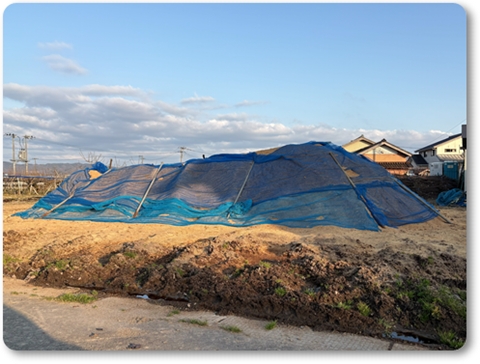 降雪の重みで、もみ殻堆肥の山がつぶされて低くなっていました。 先日、岩井店長が下の部分を寄せたので、山が高くなりました。